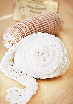 Предназначена для формования мясных рулетов, копченостей, деликатесов. Рекомендуестся для совместного применения с пленкой коллагеновой.