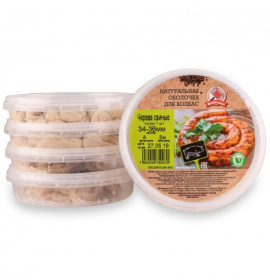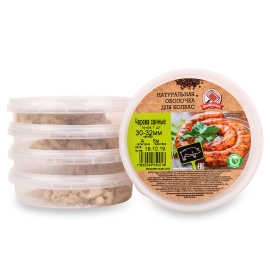 Натуральная колбасная оболочка - упаковка для формовки и хранения колбасных изделий, изготовленная из обработанных частей желудочно-кишечного тракта с/х животных. В отличие от искусственной, натуральная оболочка может использоваться в пищу и лучше сохраняет характерный мясной вкус продуктов. Натуральная оболочка для домашней колбасы купить в Москве. Черева свиная, говяжья, баранья купить оптом и в розницу. В ассортименте большой выбор: пузыри, синюги и круга.