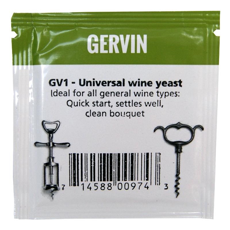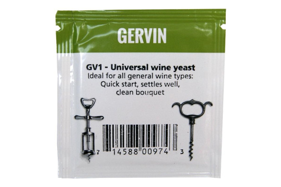 Винные дрожжи GERVIN GV1 не слишком чувствительны к двуокиси серы, в отличии от большинство винных дрожжей. Было установлено, что они могут быть пригодными для производства вин из большинства десертных сортов винограда любителями и идеально подходят в качестве дрожжей общего назначения для изготовления красных, белых и розовых вин с содержанием алкоголя до 18%.